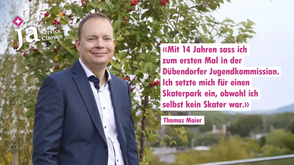 Seit 36 Jahren investiert Thomas Maier einen Grossteil seiner Freizeit in verschiedenen politischen Gremien – für die Gemeinschaft und für die Schweiz: einst in der Jugendkommission, als Gemeinderat, Kantonsrat, Nationalrat, als Präsident der Grünliberalen Kanton Zürich. Die Grünliberale Partei hat er von Beginn weg mit aufgebaut.