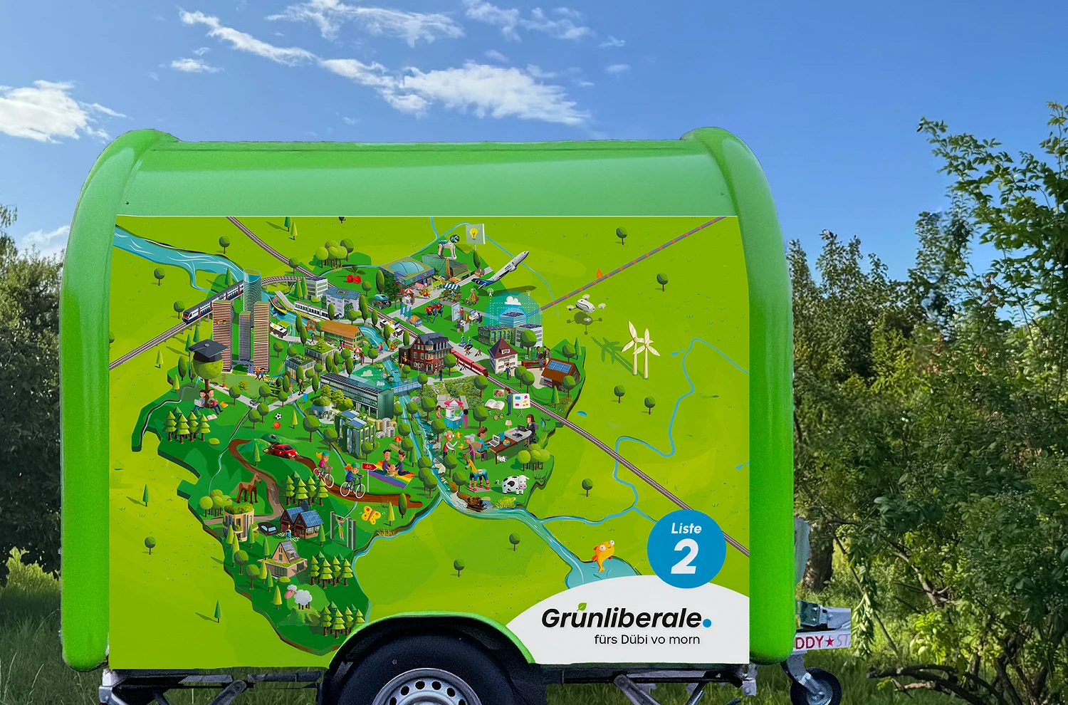 In den kommenden Wochen sind wir Grünliberalen mit unserer «WählBar» unterwegs. Komm auf einen Kaffee vorbei und zeige uns dein Bild vom «Dübi vo morn».